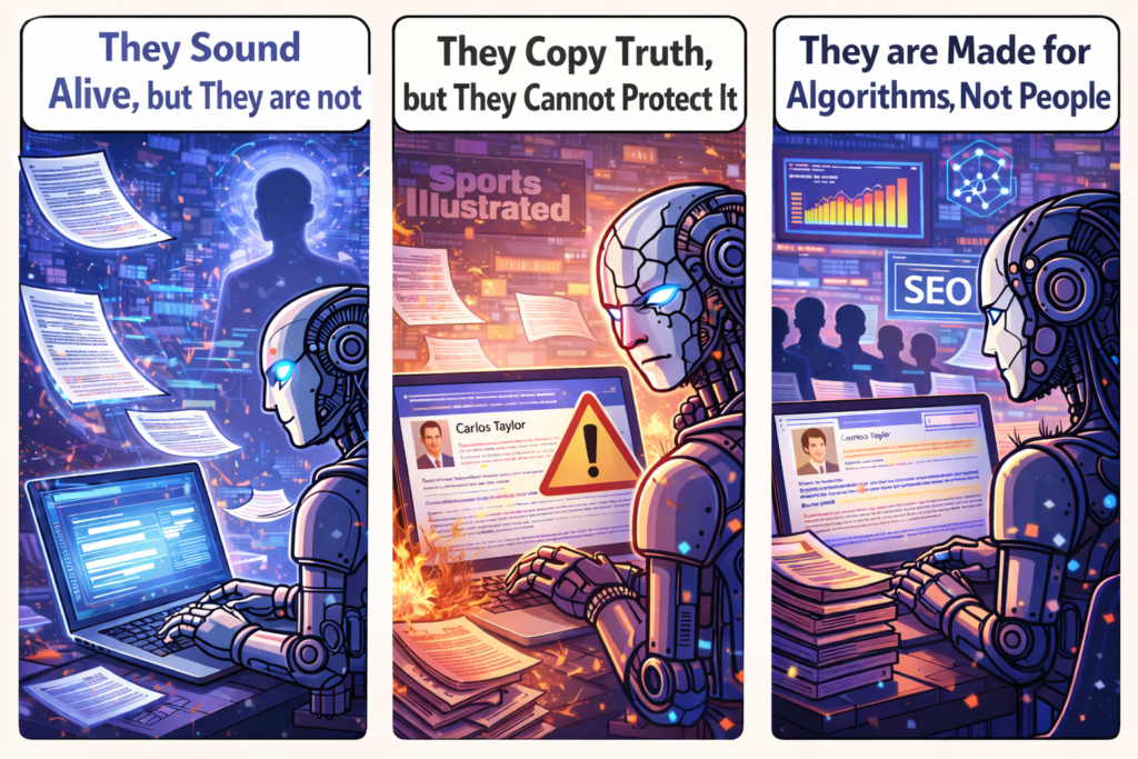 This is also why AI content scandals land so hard. It is not only about automation. It is about trust being traded for speed. Futurism reported Sports Illustrated publishing articles with seemingly fake bylines and the outlet deleting content after questions were asked. (Futurism, Maggie Harrison Dupré, Nov 27, 2023, Sports Illustrated Published Articles by Fake, AI Generated Writers) (https://futurism.com/sports-illustrated-ai-generated-writers)