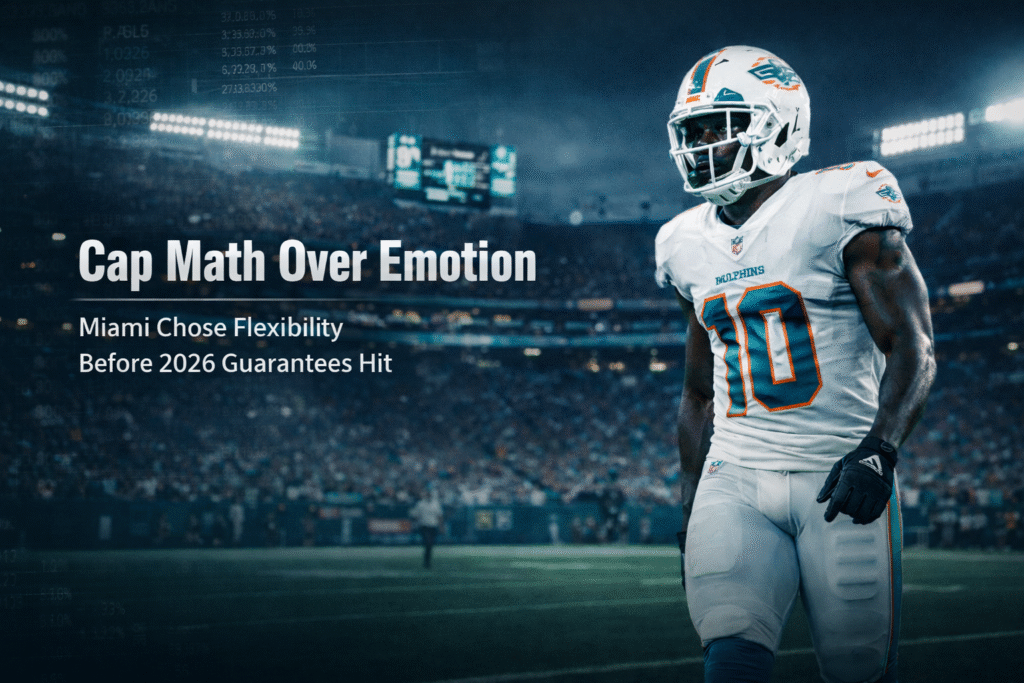 Tyreek Hill’s exit from Miami reflects the deeper mechanics of modern NFL decision making. Star production builds brand value, but cap projections determine sustainability. Injury timelines shift negotiating power. Contract guarantees activate strategic checkpoints. Teams no longer react to emotion. They model scenarios years ahead. Hill’s release was not impulsive. It was aligned with financial structure, medical projection and roster balance.